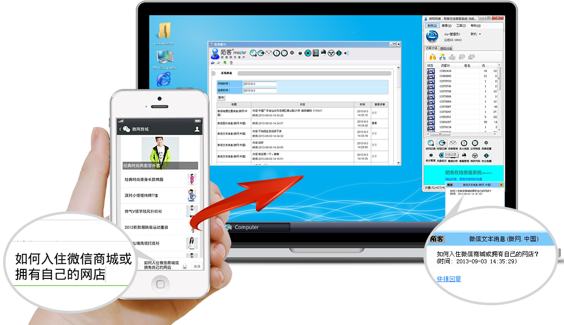 陌客mokor在微信商城中,只要訪客在公眾號中輸入信息,即可在陌客客戶端軟件即時提醒,可以快速回復(fù),回復(fù)直接在公眾號中顯示。這樣,公眾號可以即時與陌客端即時對話交流。